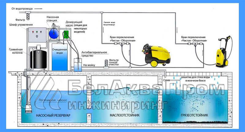 Системы по очистке воды обязательны к использованию на любом предприятии. Сервисы по мойке автомобилей (автомойки) не исключение. При мытье автомобиля с его поверхностей смывается некоторое количество песка, остатков масел и топлива, грязь различного происхождения, а также сами моющие средства. Всё это загрязняет воду, окружающую среду.